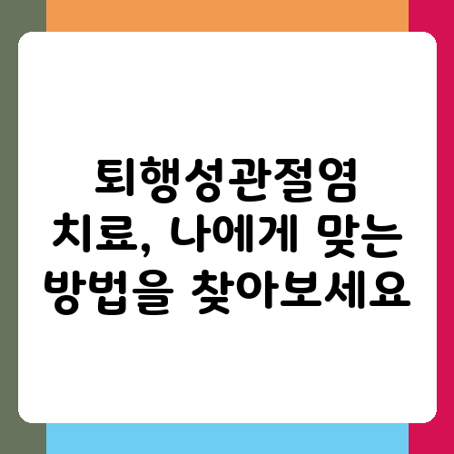 퇴행성관절염 치료, 나에게 맞는 방법을 찾아보세요