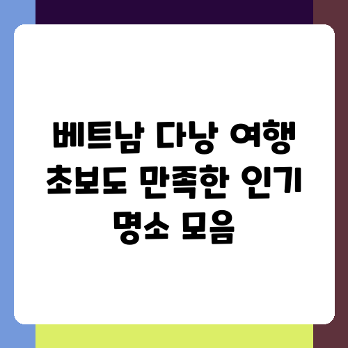 베트남 다낭, 이름만 들어도 설레는 휴양의 도시죠. 에메랄드빛 바다와 아름다운 해변, 그리고 매력적인 풍경들은 많은 여행객들을 사로잡고 있습니다. 하지만 다낭 여행이 처음이라면 어디를 가야 할지 고민이 많으실 거예요. 저는 다낭 여행을 다녀온 후, 초보 여행객도 쉽게 다낭의 매력을 느낄 수 있는 인기 명소들을 엄선해서 소개해 드리려고 합니다. 알찬 여행 계획을 세우는데 도움이 되셨으면 좋겠어요!
